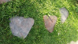 Plokšti akmenys įleidžiami į žemę taip, kad jų paviršius būtų lygus su vejos…