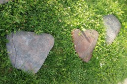 Plokšti akmenys įleidžiami į žemę taip, kad jų paviršius būtų lygus su vejos paviršiumi – taip įrengus taką, pjaunant veją, vejapjove galima…